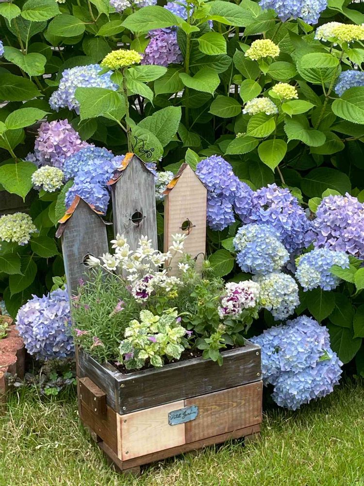 紫陽花(霧島の恵)の開花をお知らせしたくて前に置かれたプランターチームを後回しにしてしまいました😅
