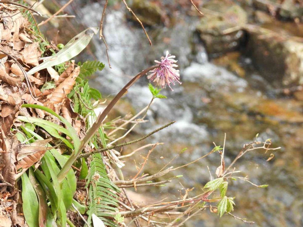 清流の景色に優しく浮かぶショウジョウバカマ。