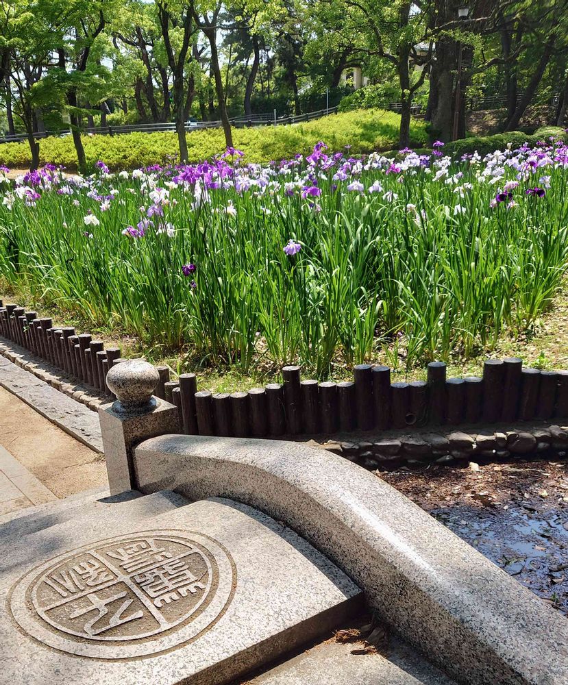 夜宮公園東側の日本庭園で菖蒲が咲いています❗😊