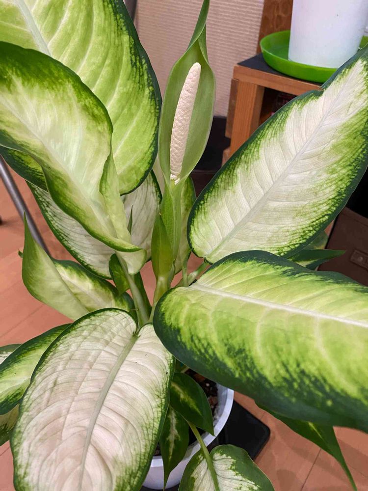 ディフェンバキアホワイトカミーラの花が🌼✨真っ白😊