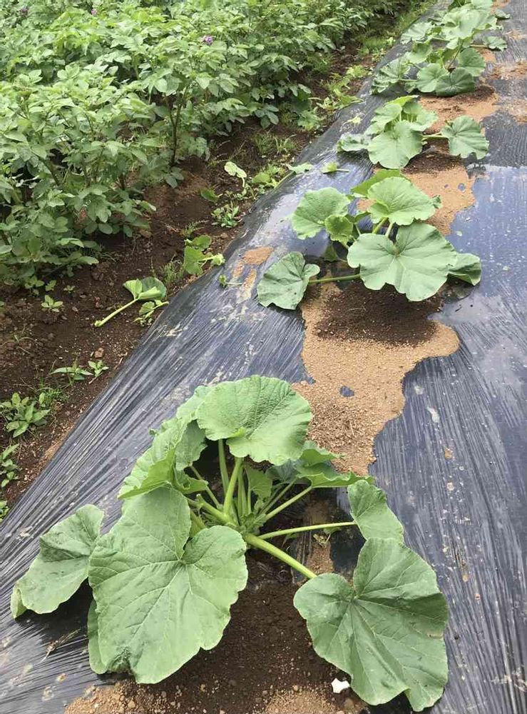 育苗失敗して直播にしたのですががどうにかなりそう、隣りのジャガイモのほうに伸ばしていきたいので、ゆっくりでよかったのかも。