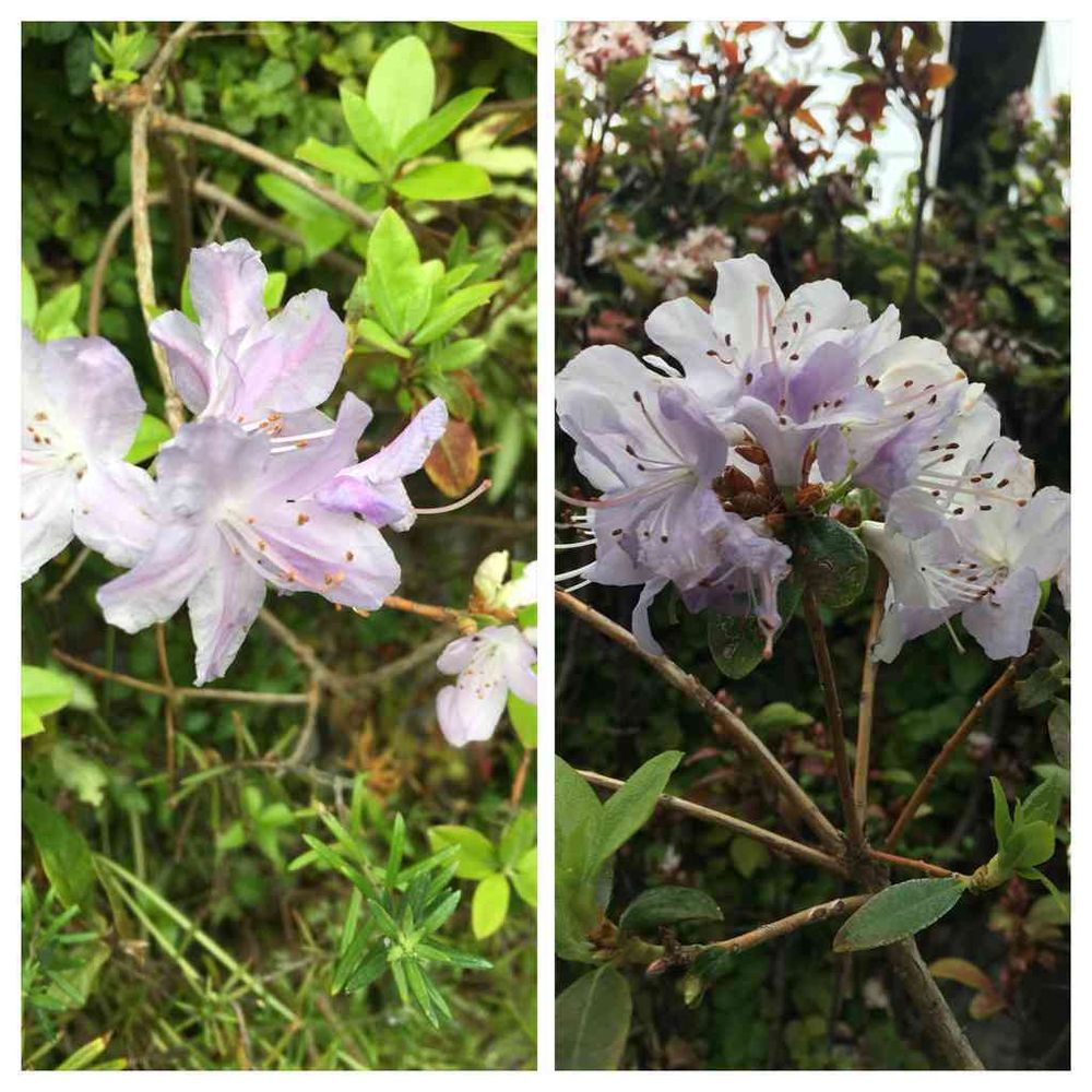 ツツジだと思う。明るさの加減で別花に見えますが同じ品種です。淡い紫が綺麗でした。