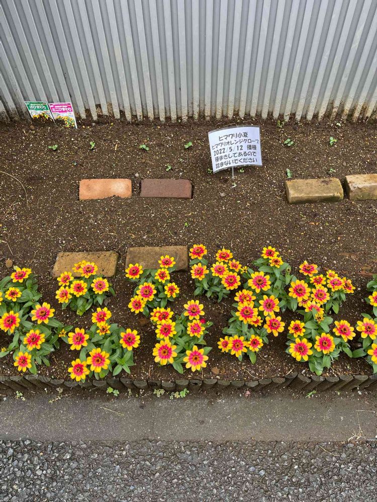こちらもサカタのタネさんの敷地のジニア レッドイエローバイカラー🌼