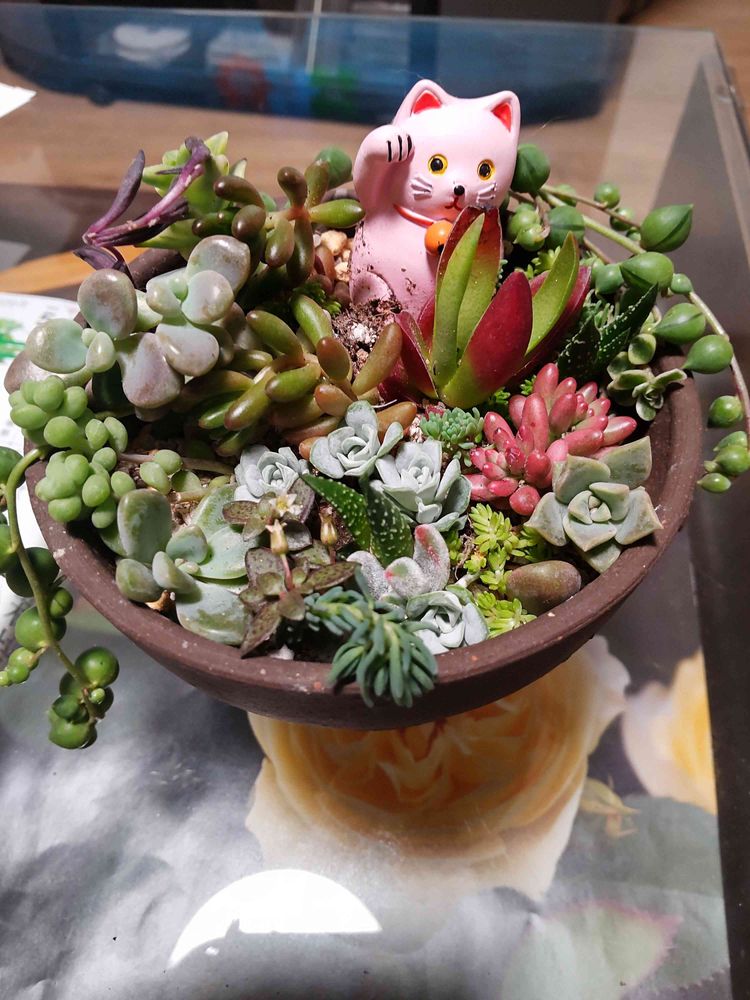 GS友から届いたチマヨセセット💓サボテンの土を買ってきてチマヨセを初めて作りました😆ピンセットでグイッと差し込んだり、隙間にそっと置いたり💦枯らしたチマヨセの飾りを再利用して…なんとかそれらしくできたかな⁉️