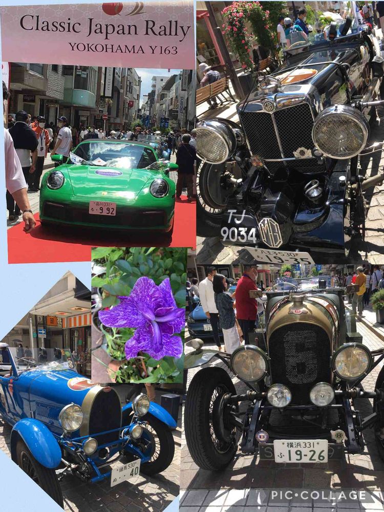 今日、元町商店街恒例のクラシックカーラリーがありました。カッコイイすてきな車がいっぱい🚗🛻でした。真ん中の花菖蒲は今朝咲いた家の2番目の花です。いい色できれいでした^o^。