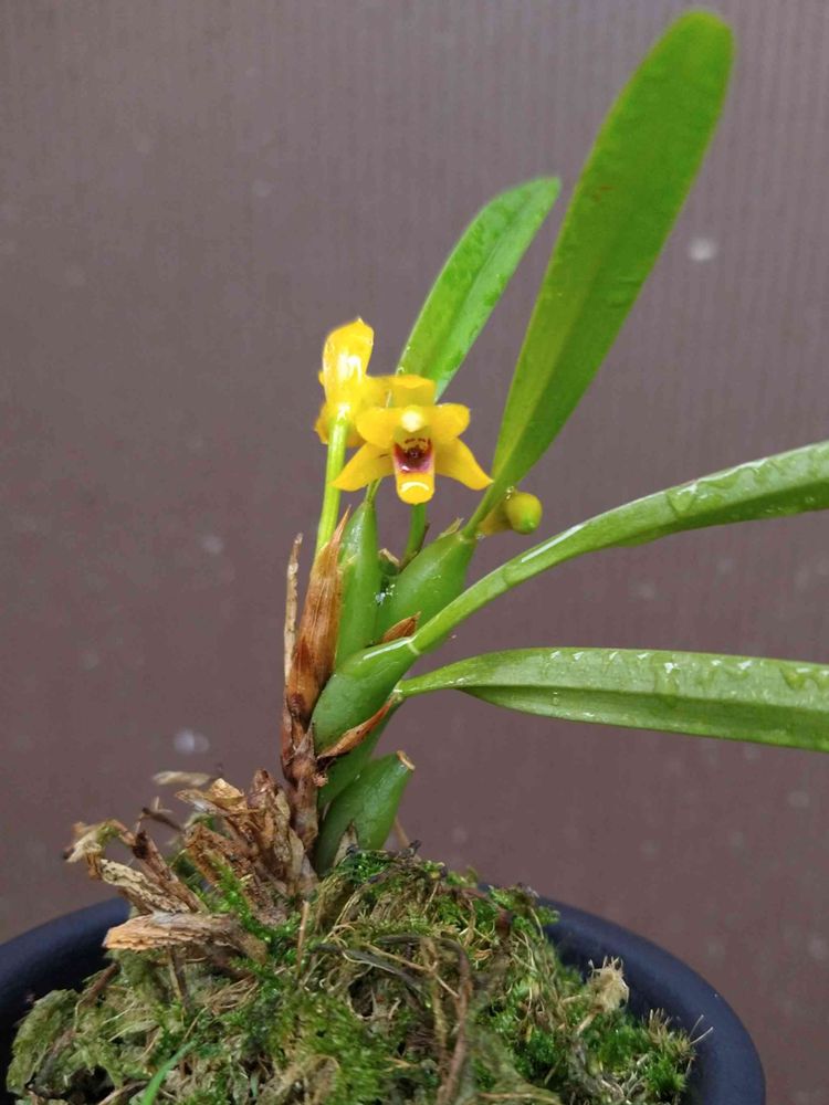この蘭は新しいバルブが出来ても匍匐せずに上に上に立ち上がるから大株にするとまとまりが悪くて仕方ないんだけど、適当に切って差しててもすぐ着くみたいだから、こまめにトリミングして芝生みたいにしてもいいのかもしれない。