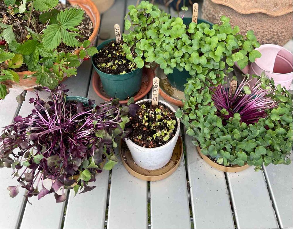 バルコニー/ベランダ,ルビーカイワレ大根栽培,紫カイワレ大根栽培の投稿画像