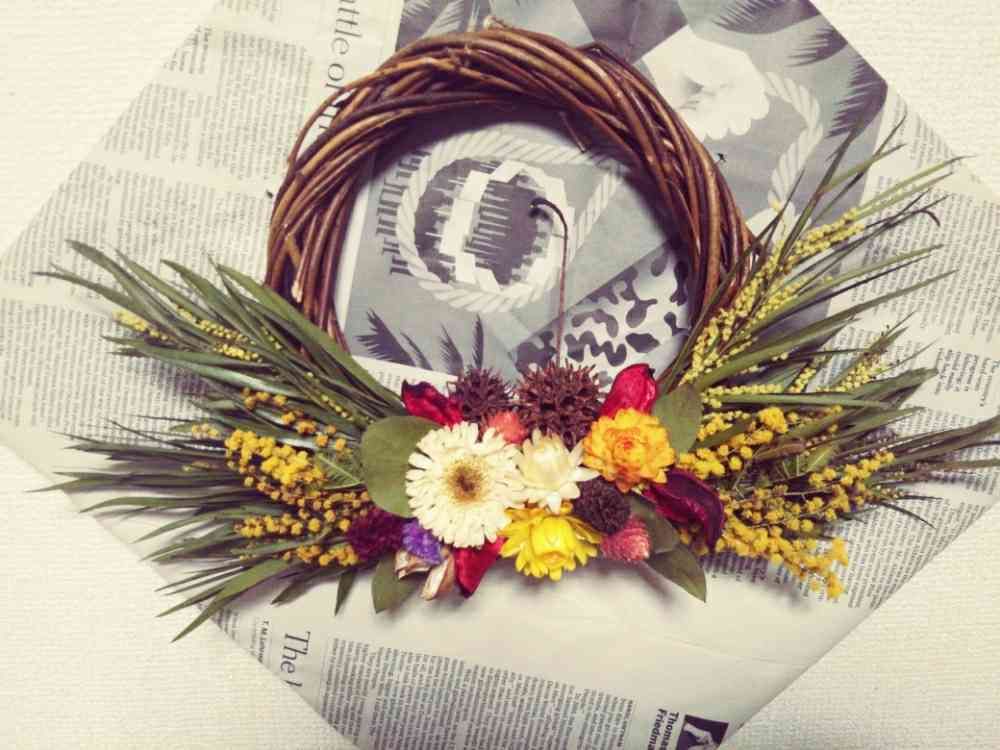 リースを発送するときは、picのような台紙を作って(段ボールをリース大きさにカットして英字新聞でくるんで)その上にリースを置き、台紙の裏から結束バンドで2箇所くらい表面から見えないようにとめて、そのまわりをセロハンでくるんでますよ。リースを台紙に固定するから、箱にいれたときに動かず、きれいにお届けできているようですよ😉かなり大変ですが、その固定が一番のように思いますよ~😉分かりにくかった🙇💦💦