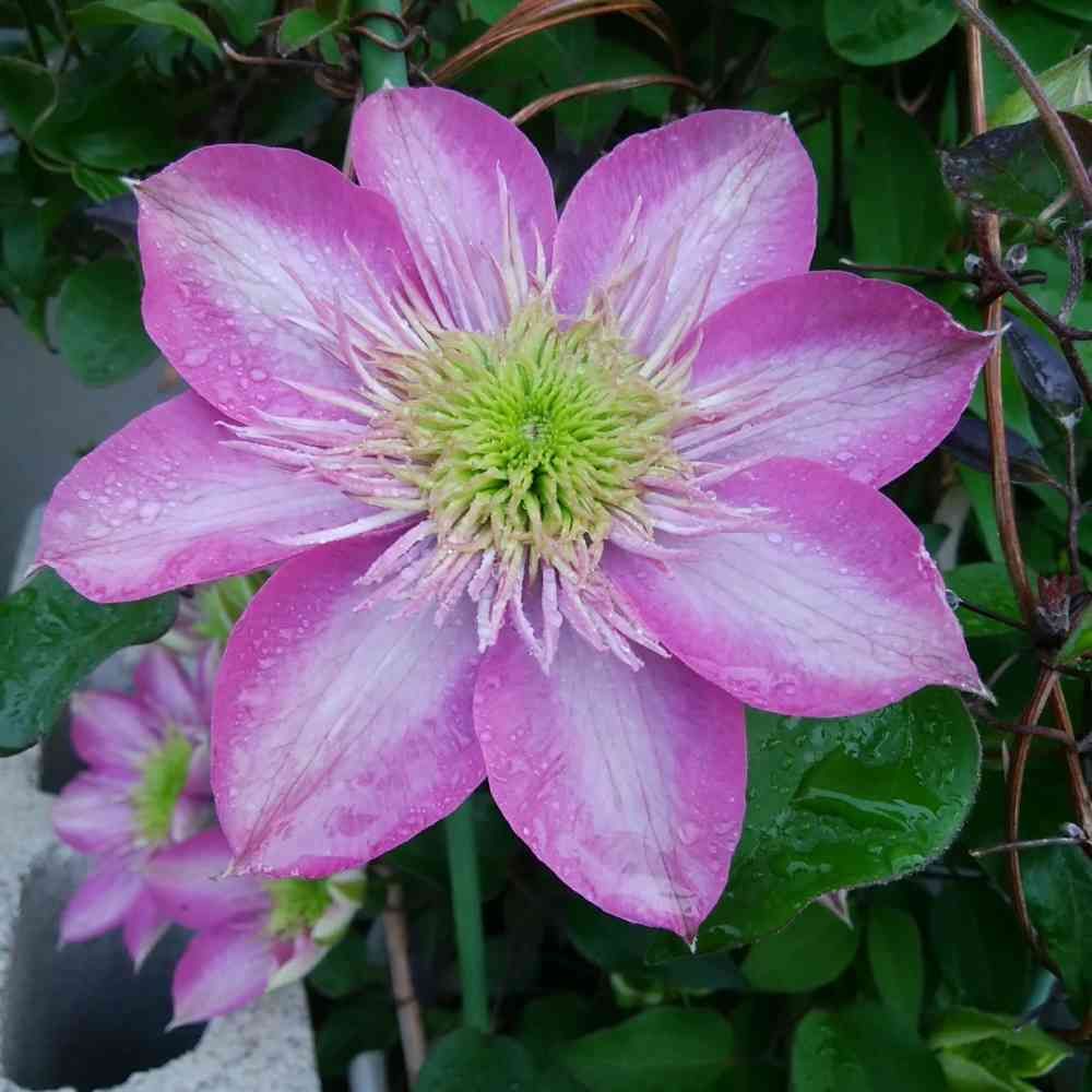 隣のクレマチスと絡まってしまい、剪定するときに大変です!