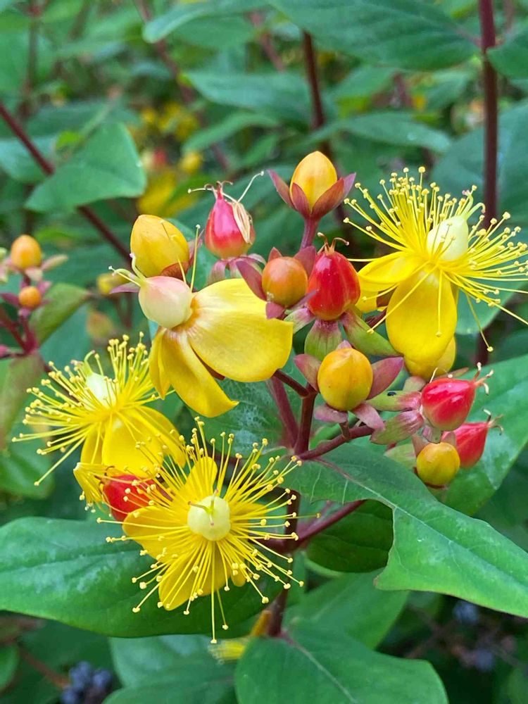カラフルな蕾や花や実、ほんと花火のような美しさのヒペリカム✨💕