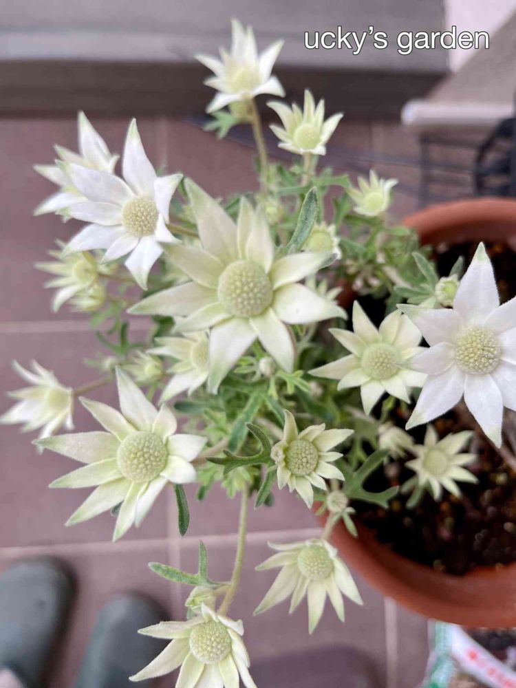 フランネルフラワーは私も何度も育てて、失敗してばかり。今回やっと土を替えたら、2年目のお花が咲いたけど、これ映ってない部分はひょろーんと横に伸びた枝に咲いてて、すごくぶちゃいくちゃんなんですよ😅💦