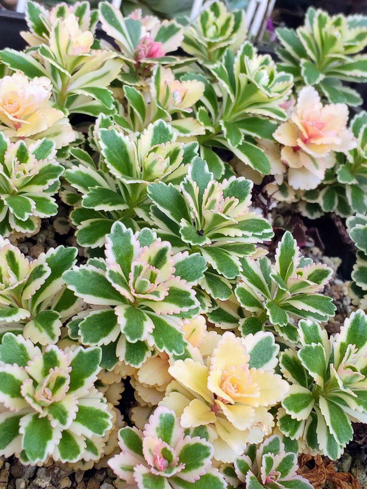 セダム・アトランティスさんのお色が 夏色に変わりそうです😻💚🤍💛💗