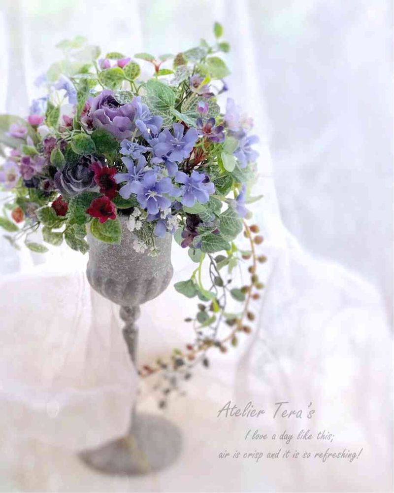 はじめまして。アトリエテラスと申します。千葉県佐倉市でアーティフィシャルフラワーアレンジ教室を主宰しております。体験レッスン受付中です。お気軽にコメントにてお問い合わせください。 シャビーアンドナチュラル千葉認定校です。