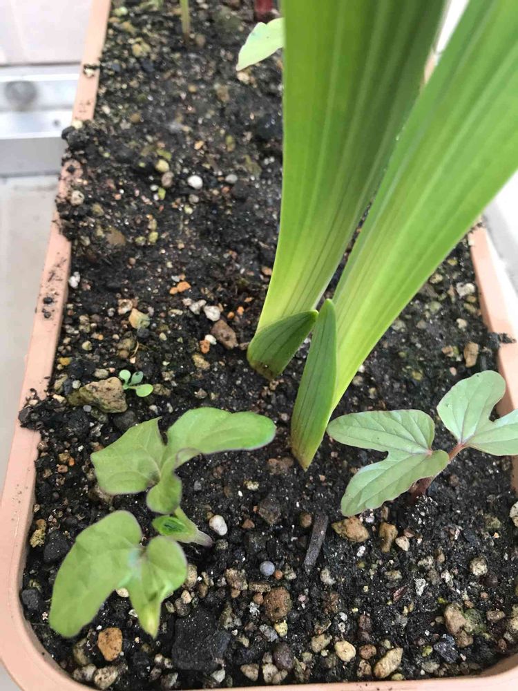 グラジオラスの球根があると忘れていて、種を植えてしまったあさがお。植え替えしないとなー😅