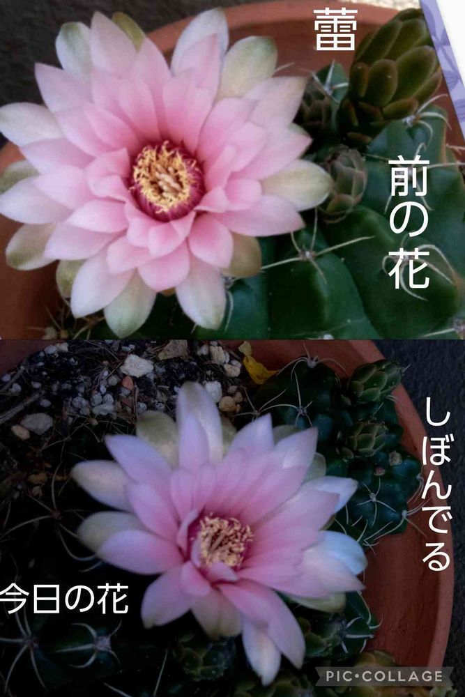 上のは18日に咲いた🌵🌺隣の蕾が、下の今日咲いた🌺隣でショボケているのが咲き終わりの上の