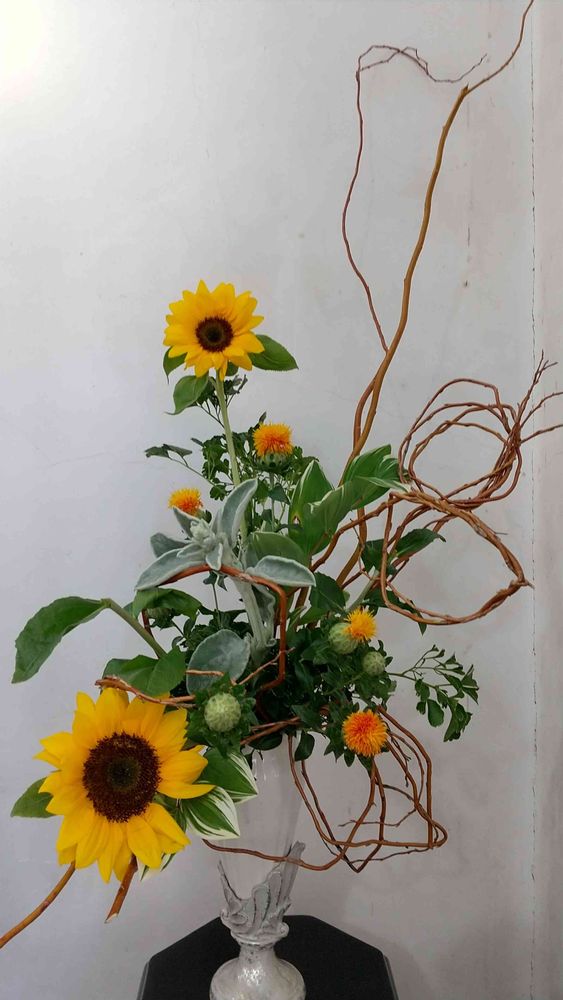 ウンリュウヤナギの動きが好きです❗️ヒマワリと紅花が夏らしいでしょ🎵