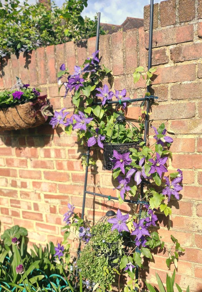 先日アップした薔薇の近くにあるクレマチス。ハンギングバスケットのペチュニアやロベリアがまだ咲いてないけど、クレマチスのお花のお陰で豪華です✨
