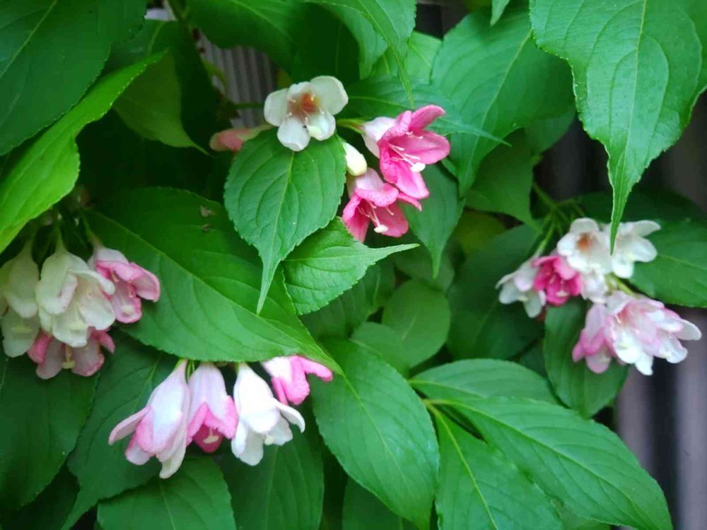咲き始めが白で、~ピンク~赤と花色が変化するのがハコネウツギ。