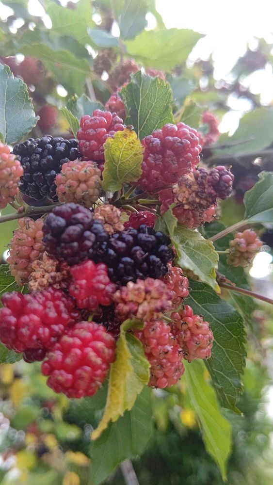 昨日の散歩🚶♀️、大きな桑の木に、たわわに実った桑の実。