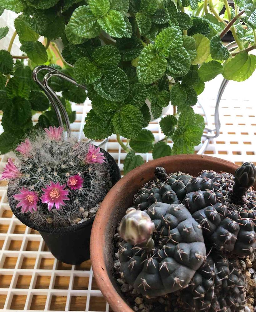 サボテン瑞昌玉さん、蕾がふくらんできました💓高砂サボちゃんも🌸ぐるりと花冠💖
