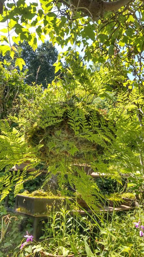 義父宅の庭木に吊るされてる苔玉のシダ🪴