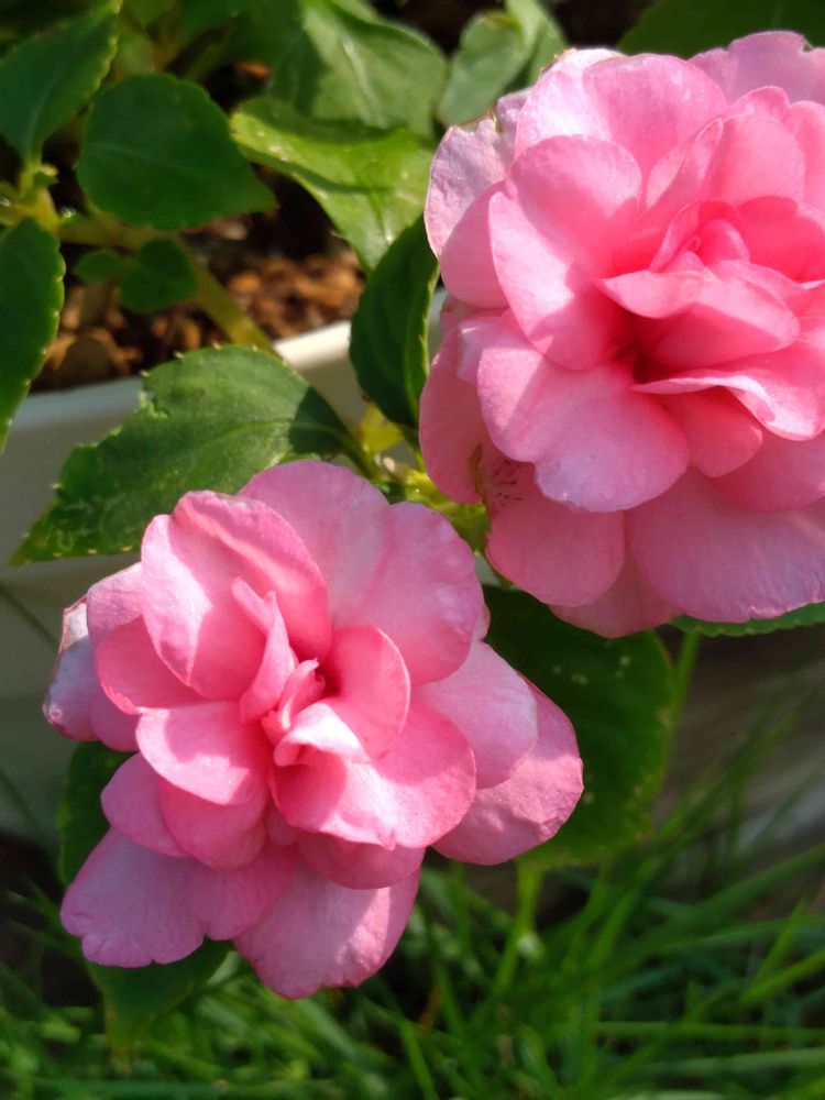 広い庭,バラ咲きインパチェンス,カリフォルニアローズ フィエスタ ピンクラッフルの投稿画像