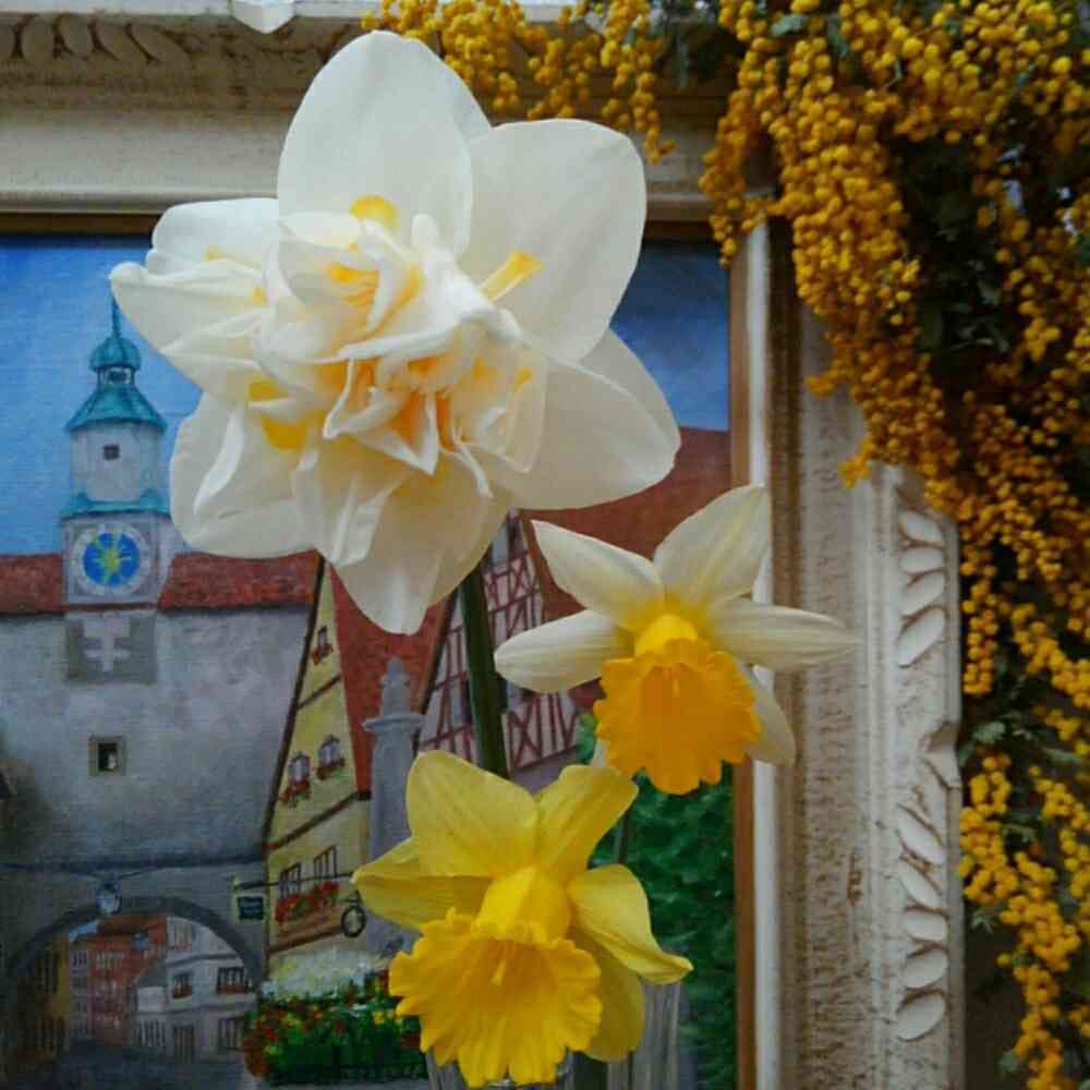 昨日は来客があったので、おもてなしの気持ちを込めて庭のスイセンを花瓶に挿してみました💛