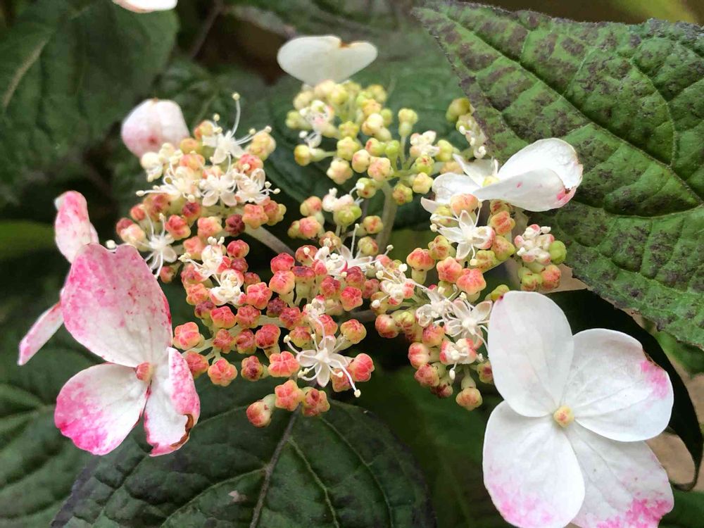 山紫陽花で白から赤に変化していくんよ。