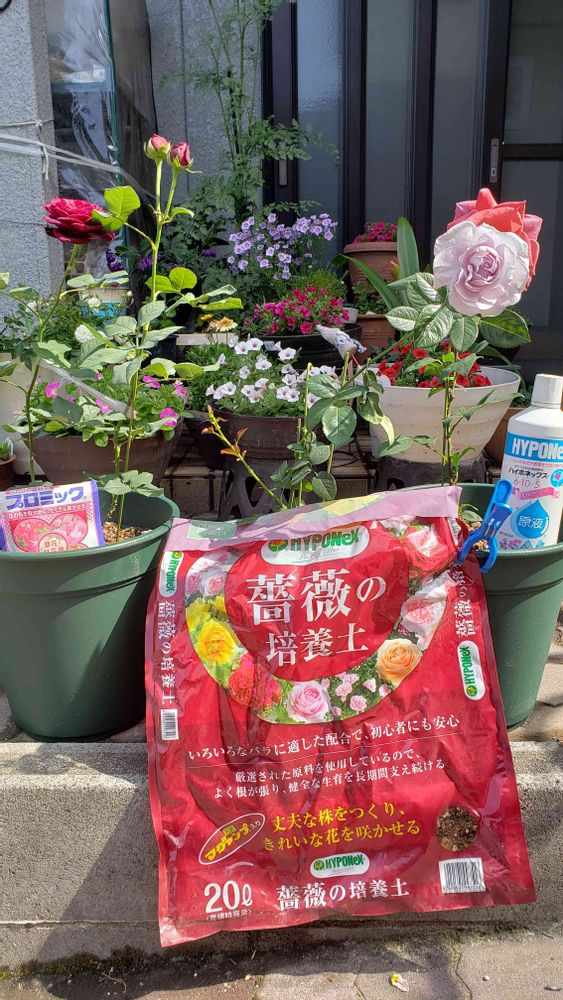 常日頃、みなさんも、愛用してるかと、思いますが、液肥から、追肥など、お世話になってますが、バラを育てるにあたり、安定のハイポネックスさまの、バラの土も使用してます。