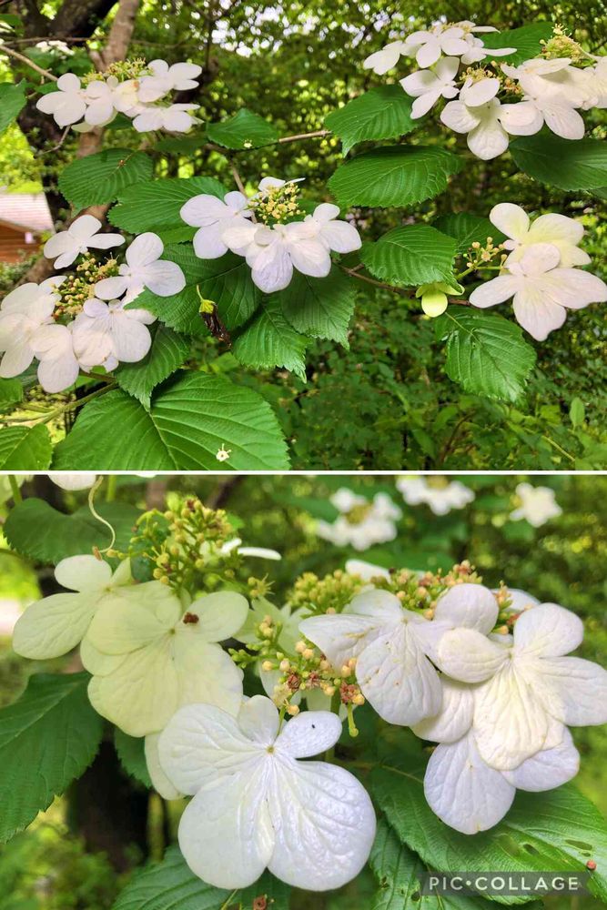 林の中でまだ両性花が開ききってないので、装飾花がえらく立派に大きく見える。