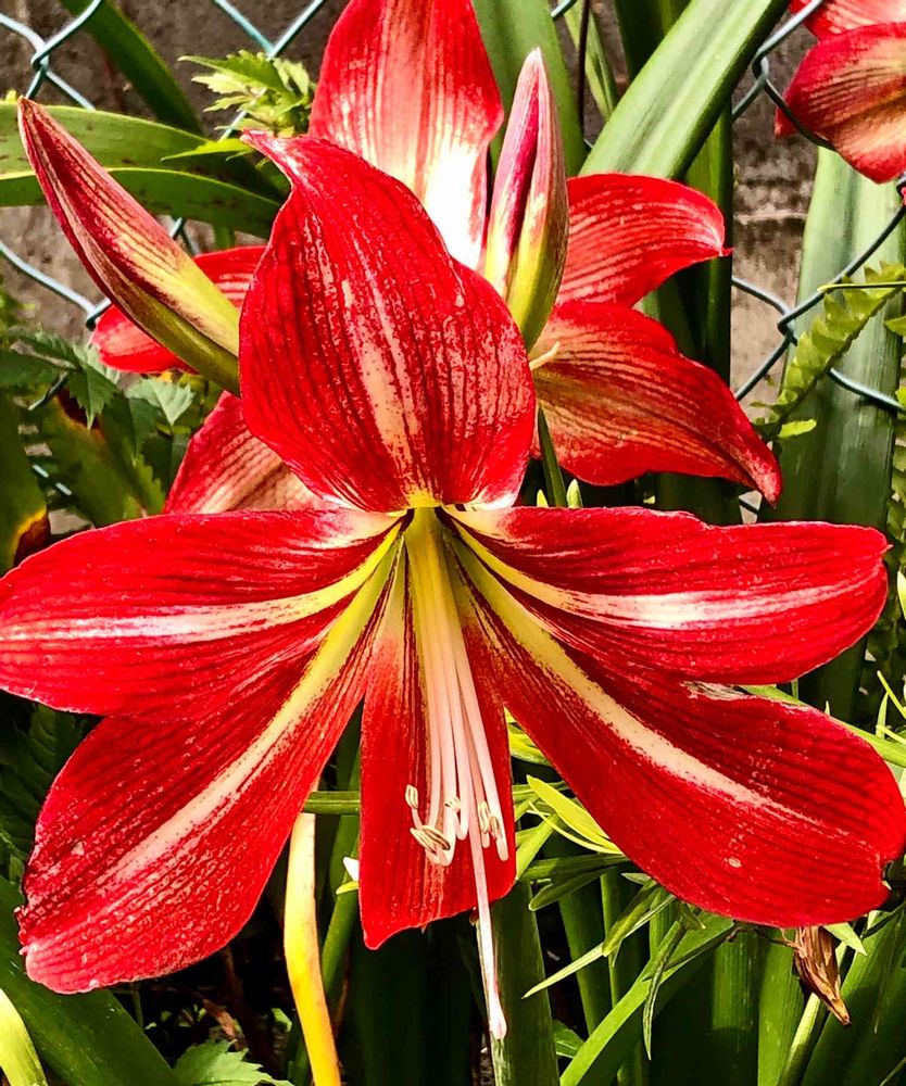 裏庭に大きな大きな真っ赤なアマリリスが咲いています。