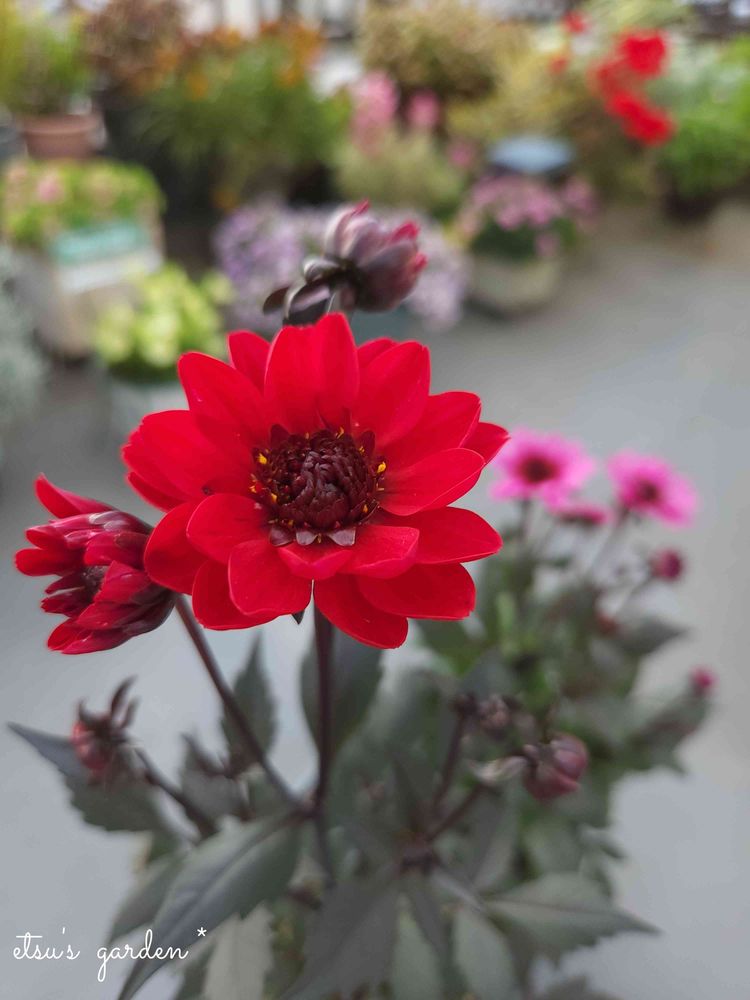 Etsuさんの銅葉ぷちダリア,かわいい,赤い花の投稿画像
