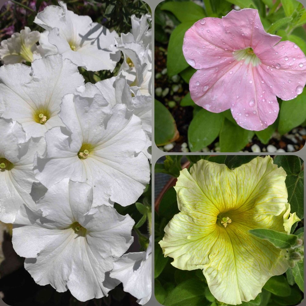 ペチュニアと聞いて成功した方が素晴らしいと思います❣️😍お花も三色〜❣️めっちゃ可愛い💕😍❣️