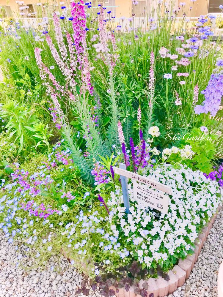 サルビア、ペンステモン、リナリア、デルフィニウム、ビオラ、ネモフィラが咲き乱れてます。