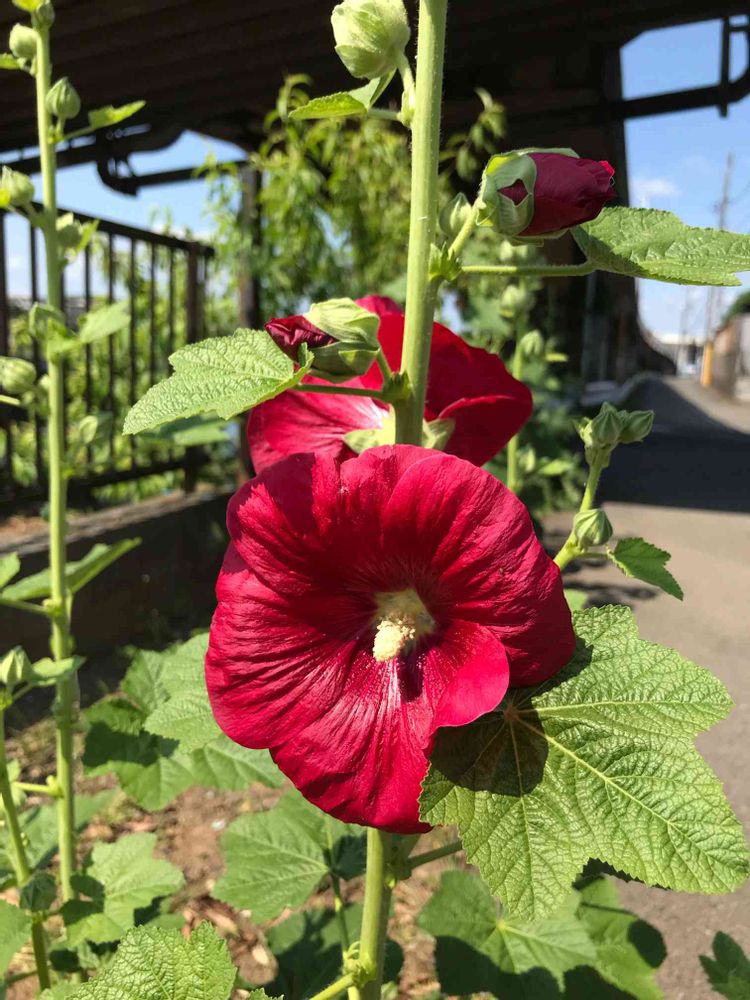 真っ赤なタチアオイ綺麗ですね✨✨✨