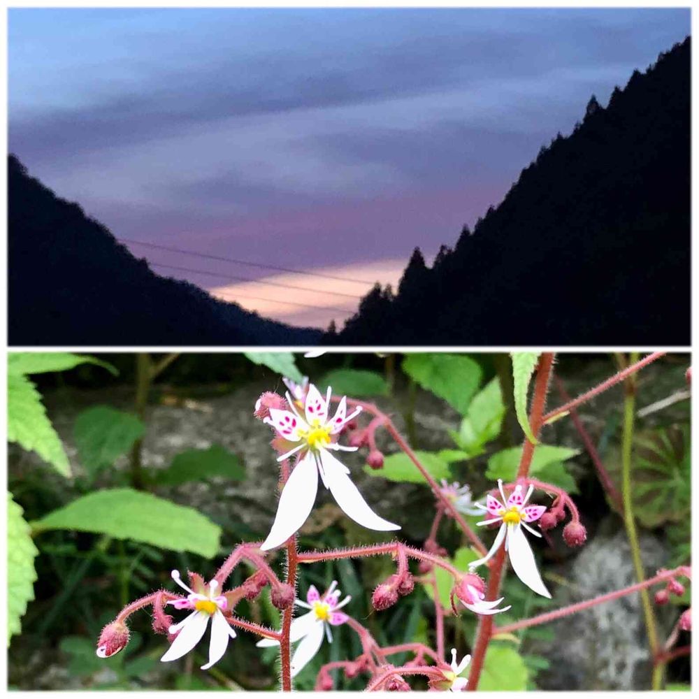 昨日の夕焼けと、家の裏の石垣にたくさん群生して咲いています🤗🎶