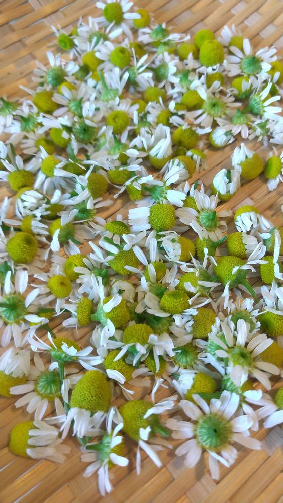 花友さんに教えて頂いたように、カモミールのお花を、ドライにしましょう。