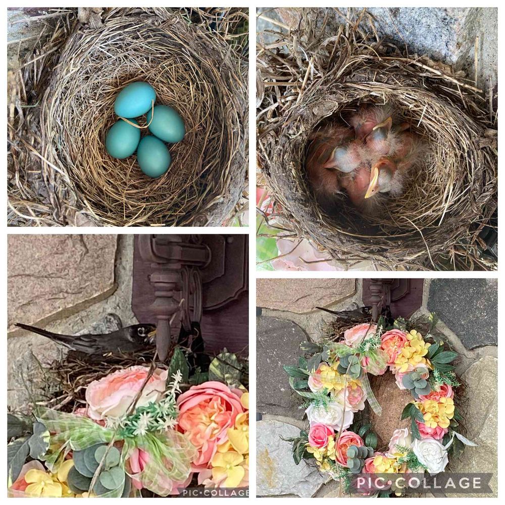 玄関ドア横のリースに造られた鳥(ロビン)の巣 続報