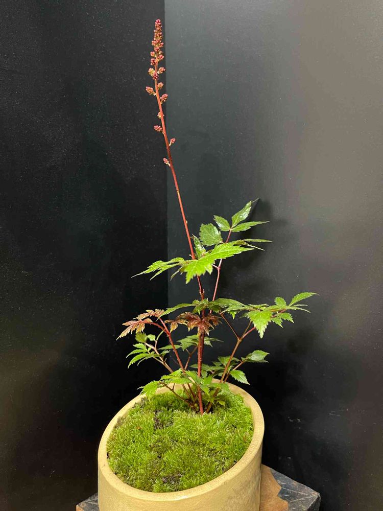 先日迎えた紅花ホザキショウマを鉢植えして苔貼り完了です😉
