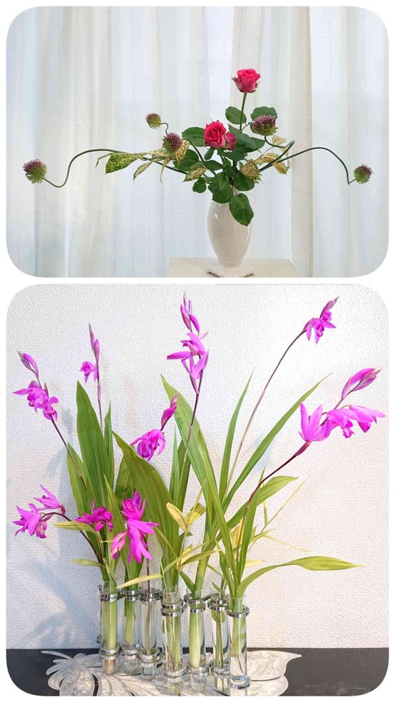 ⬇️ 断捨離中の先生から頂いた花器に先生のお庭に咲き乱れる紫蘭💜を生けさせて頂きました🎵😍🎵
