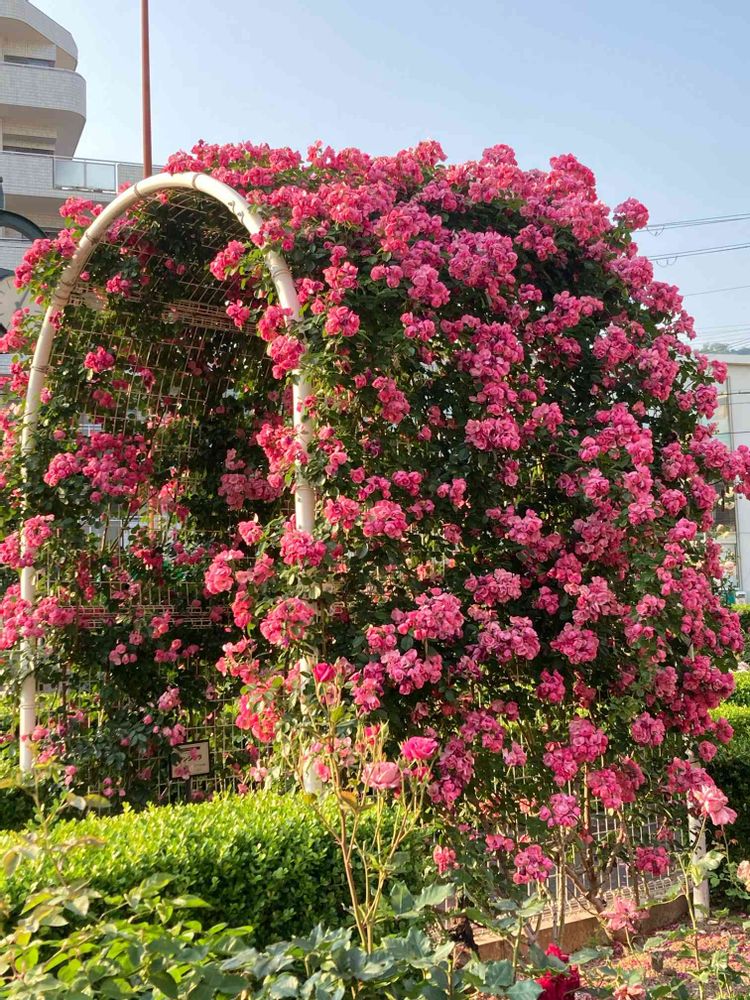 可愛らしい薔薇のアーチですね🥰🌹🍃🌹🍃🌹💕素敵です💖