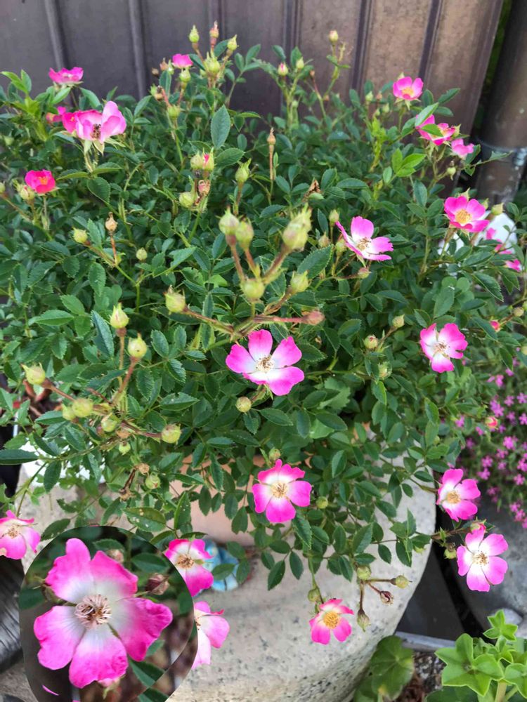 薔薇の季節〜♬我が家も次々咲いてます〜🌹鉢植えですよね〜❓うちのミニ薔薇さんは鉢植えだとなんだか元気が出ないので畑の隅に植えちゃいました😅