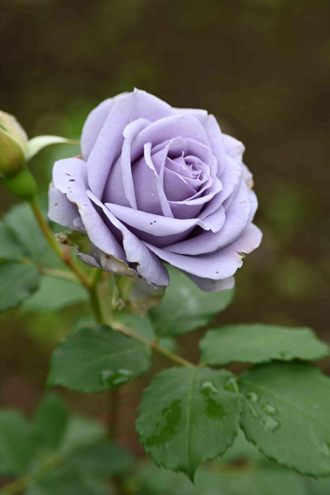雨上がりのバラ園で、深い青薔薇が咲いています💙🌿✨