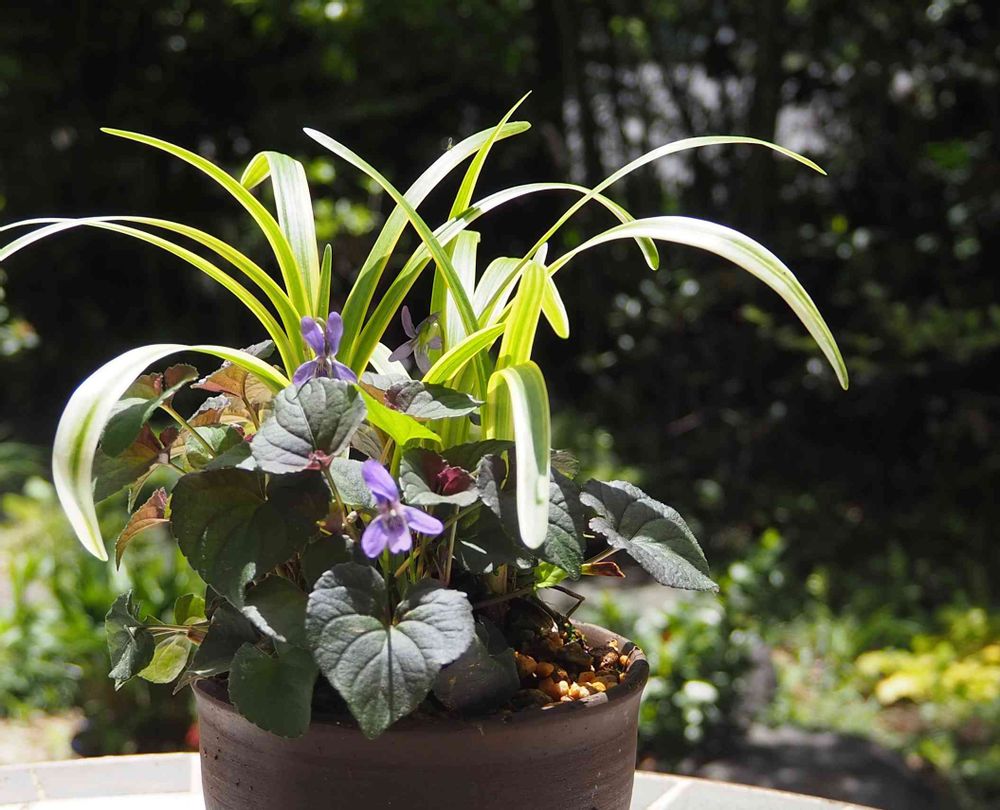 青紫色の花♪銅色の葉♪と明るい細長葉がなんとも..♪