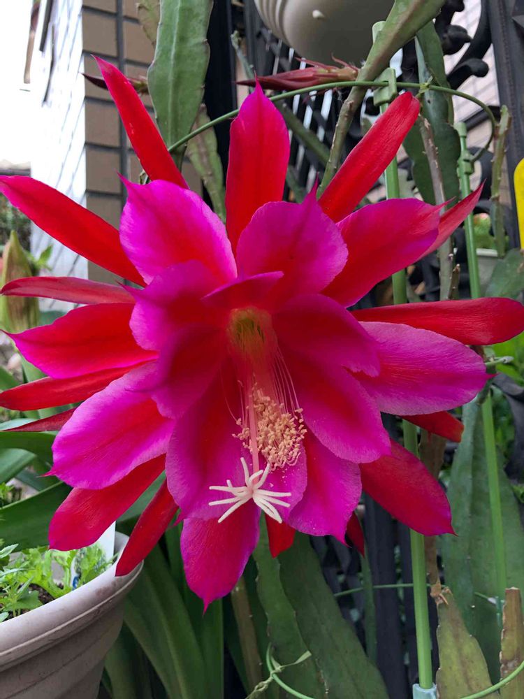 16cmの大きなお花が咲いたので皆さんにみて頂こうと門の外に出しました😆