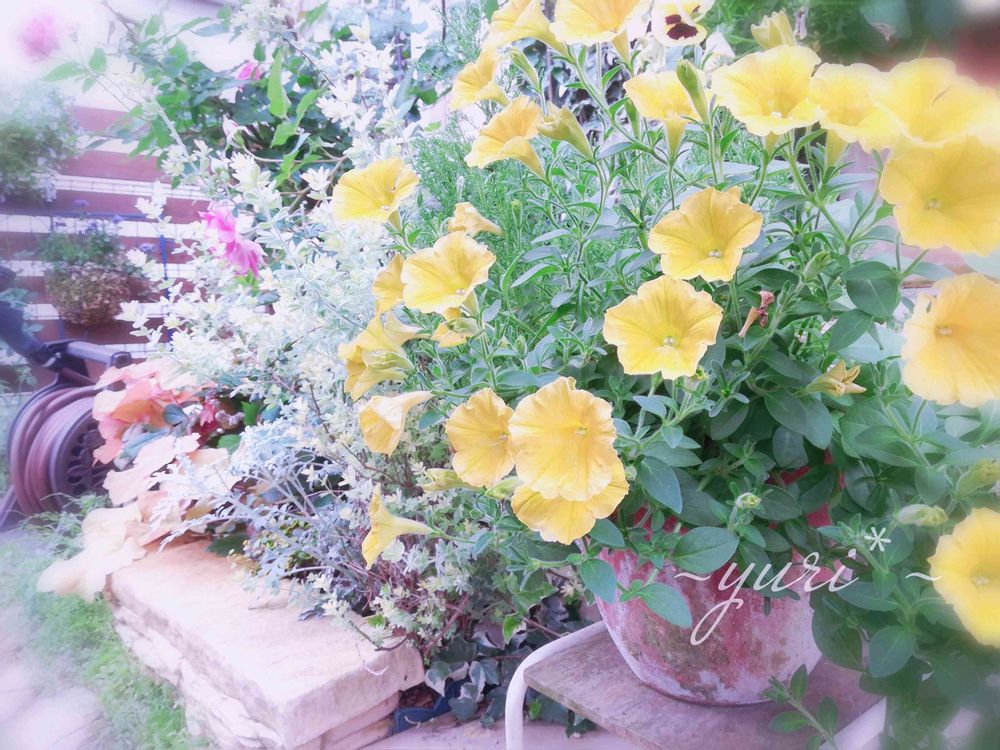 くすんだ黄色なので浮かずに場も明るくしてくれるペチュニアさん🌿