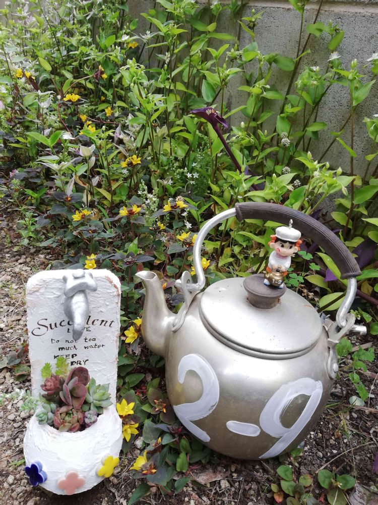 はーい(。・_・。)ノ多肉小屋の地面にずっと そのまま転がしてた やかん