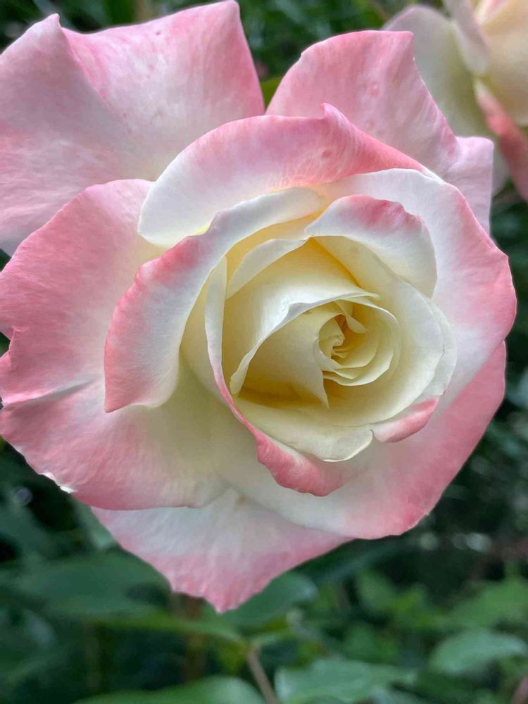白地にコーラルピンクの覆輪で、花保ちがとても良いばらです。