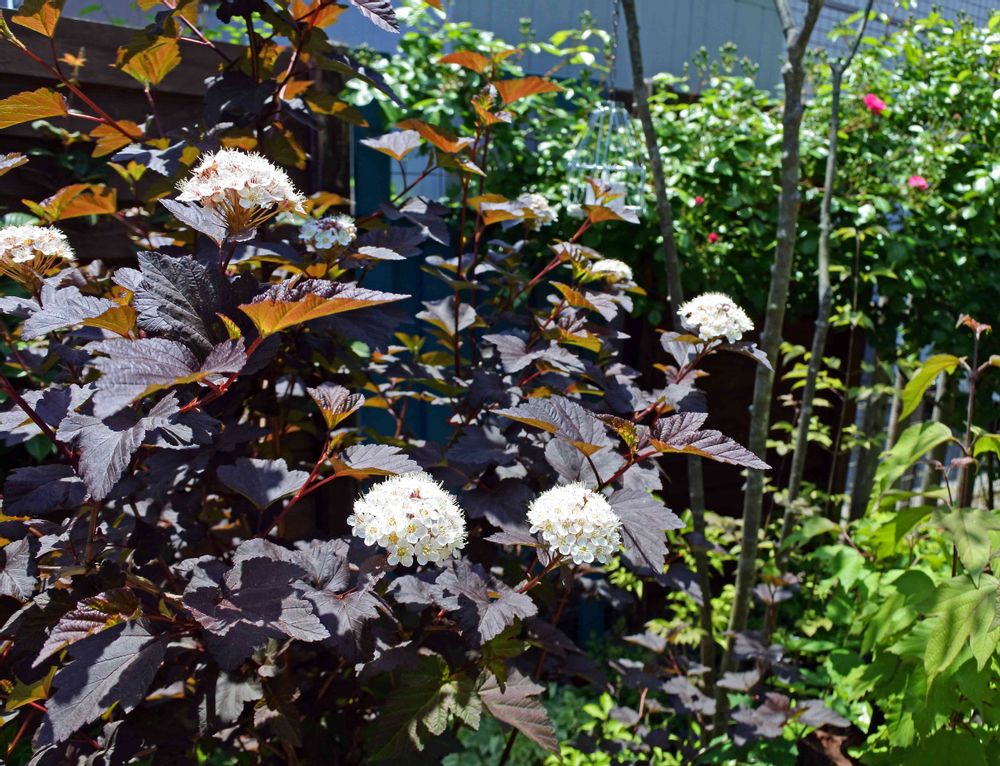 ディアボロの花が久しぶりに咲いてます。いつも小さく保つために切ってばかりでなかなか花を見れなかったんですが、この周辺に植えてあるものを減らして少し自由にさせたら咲いてくれました(´-`*)