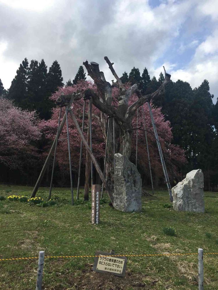 薬師堂の桜のすぐ近く、県指定天然記念物、釜の越桜ですが…